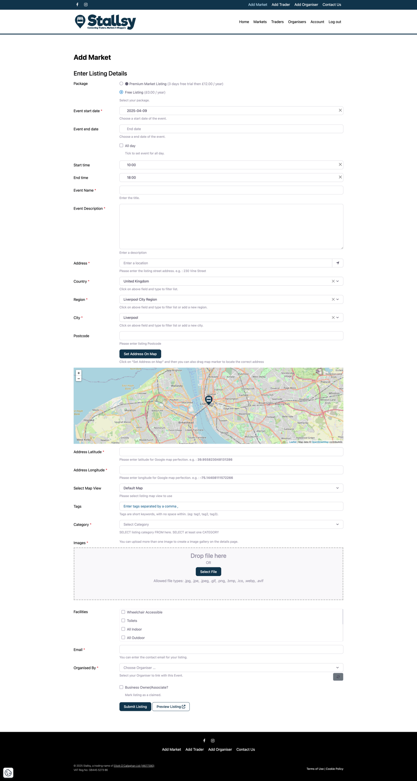 Once you have created your 'Organiser' account, it's now time to add your markets to Stallsy.