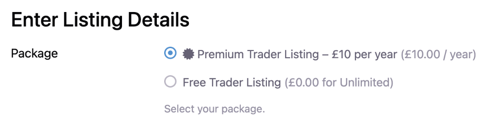 To upgrade your trader listing to a different package, make sure you are logged into your account.